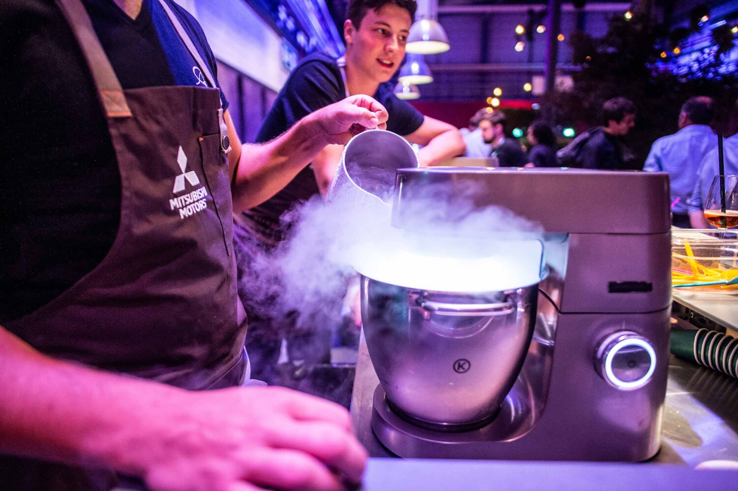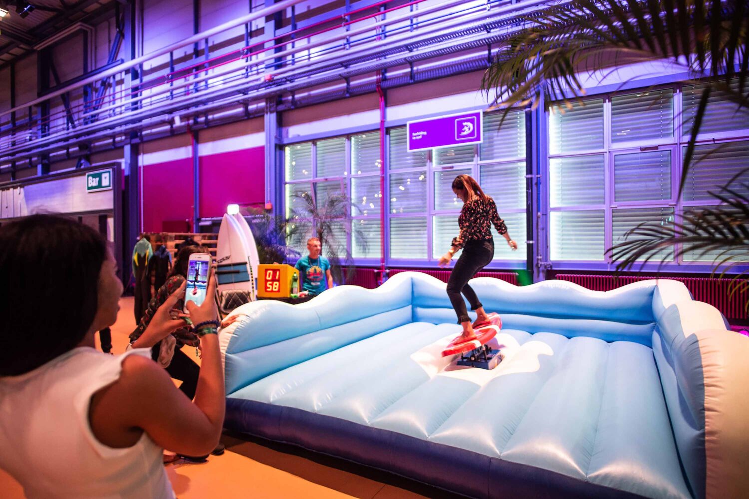 We translated the campaign motto “Keep moving” into the event concept and transformed the foyer of Hall 622 in Zurich Oerlikon into an idyllic summer garden, which, with soft lighting moods and an opulent world of plants, whisked the 700 guests away into a walk-in fantasy world as they entered. By creating various game stations, we wanted to ensure that the employees also kept moving during the event. In the outdoor area, visitors could give free rein to their culinary curiosity at a street food market they had assembled, and they were able to enjoy all the delicacies their hearts desired at a good dozen food stalls throughout the evening. In the run-up to the event, staff were able to vote on the exact repertoire of evening treats and activities. The subsequently shortened organisational time window for the set-up demanded quick responsiveness and special improvisational talent from the team.