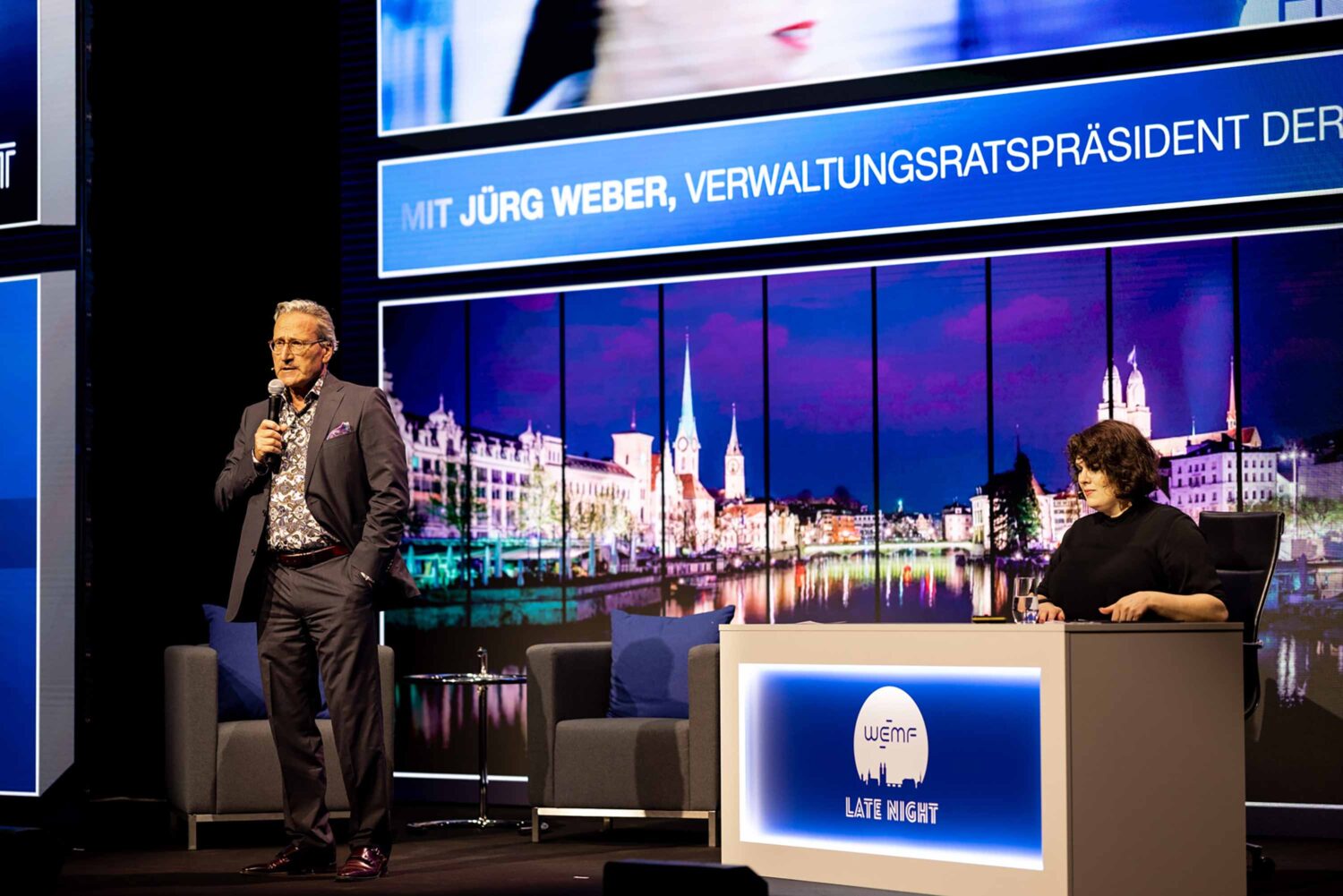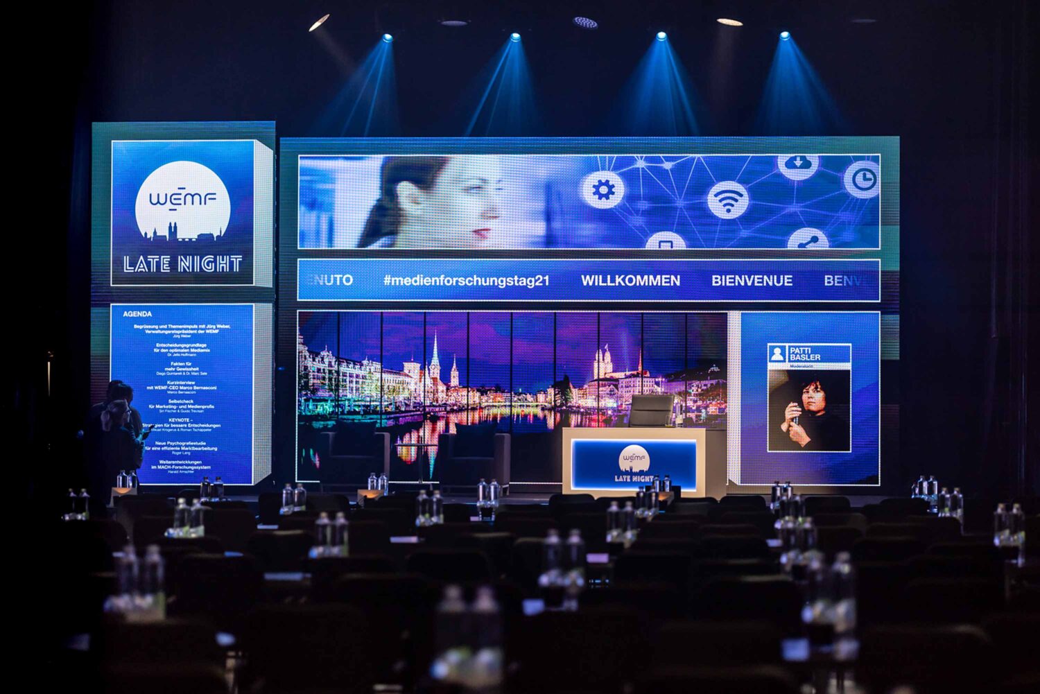We developed this late-night show-style concept under the leitmotif of decision-making. Host Patti Basler welcomed experts from WEMF AG, who gave insights into current publications and product innovations of their media research in interviews and guest contributions. Authors Mikael Krogerus and Roman Tschäppeler gave additional humorous impulses on the topic of decision-making in a chalkboard keynote.