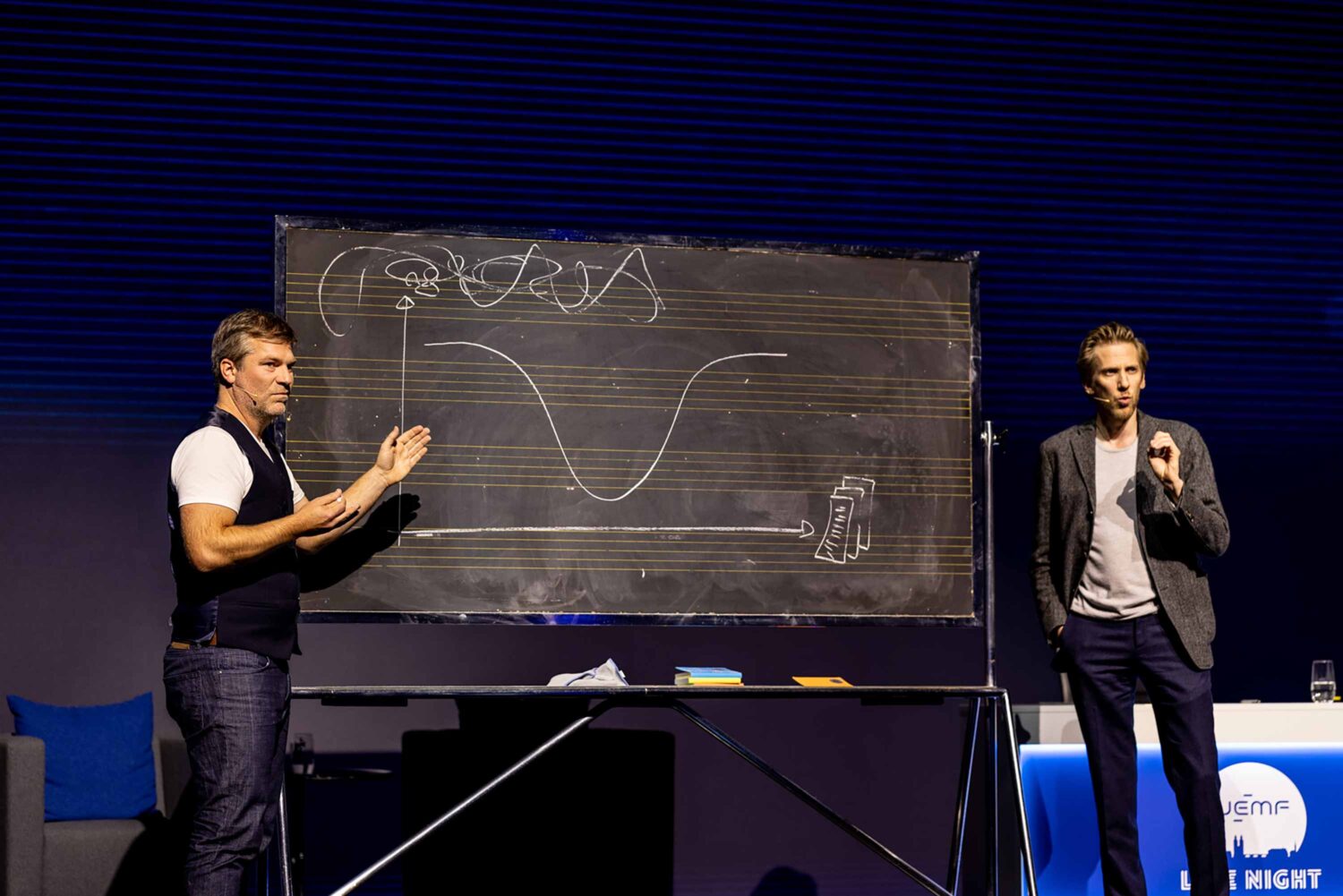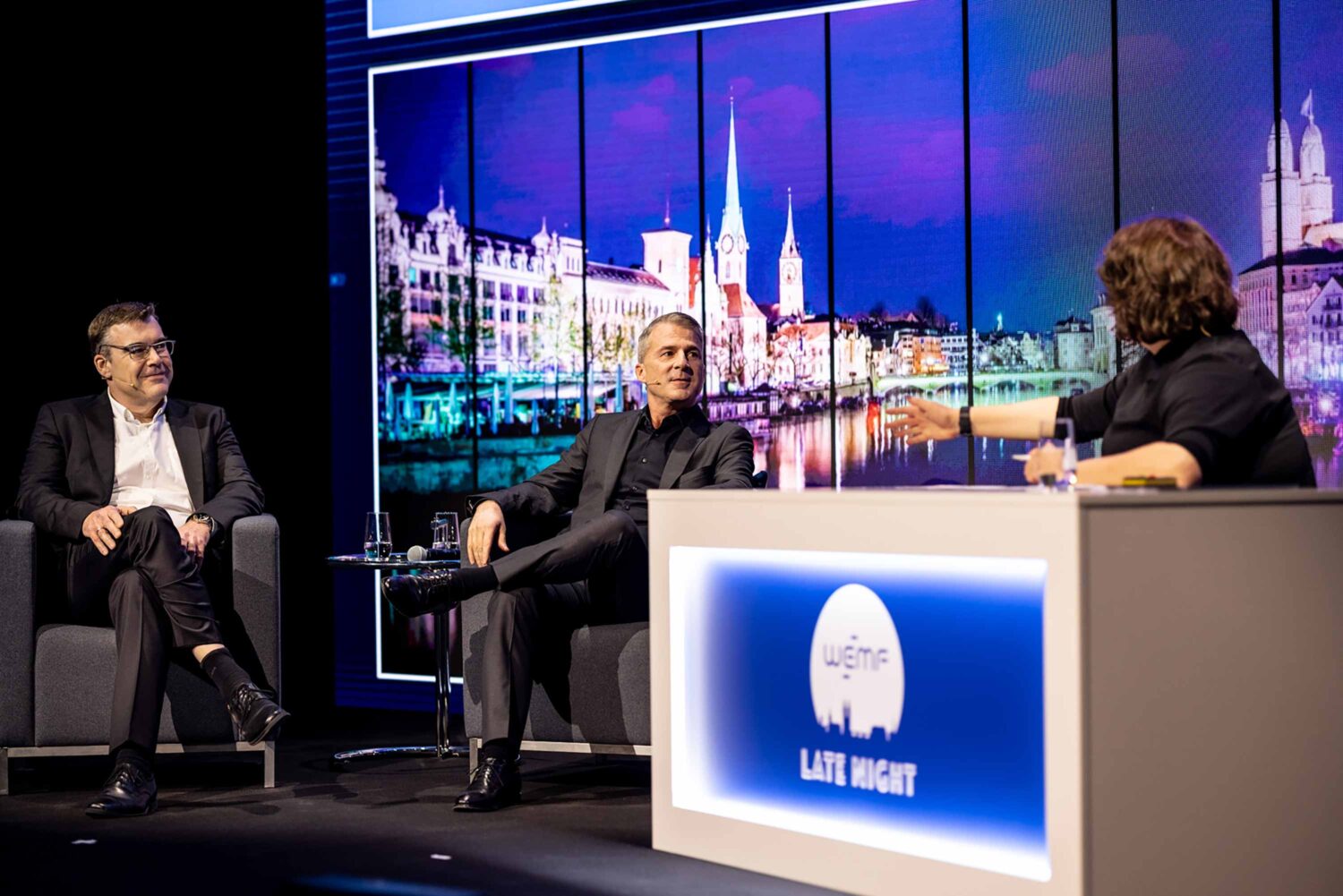 After the 2-hour late-night show, the local guests were able to engage in conversation over an aperitif, while the virtual guests were able to round off the livestream with an exclusive Q&A session with Krogerus and Tschäppeler.